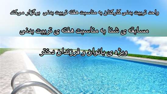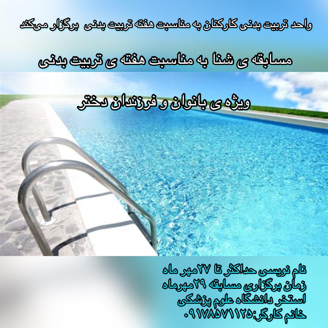 اطلاعیه مسابقه شنا ویژه بانوان و فرزندان دختر پرسنل دانشگاه علوم پزشکی جهرم