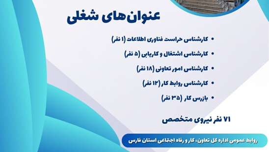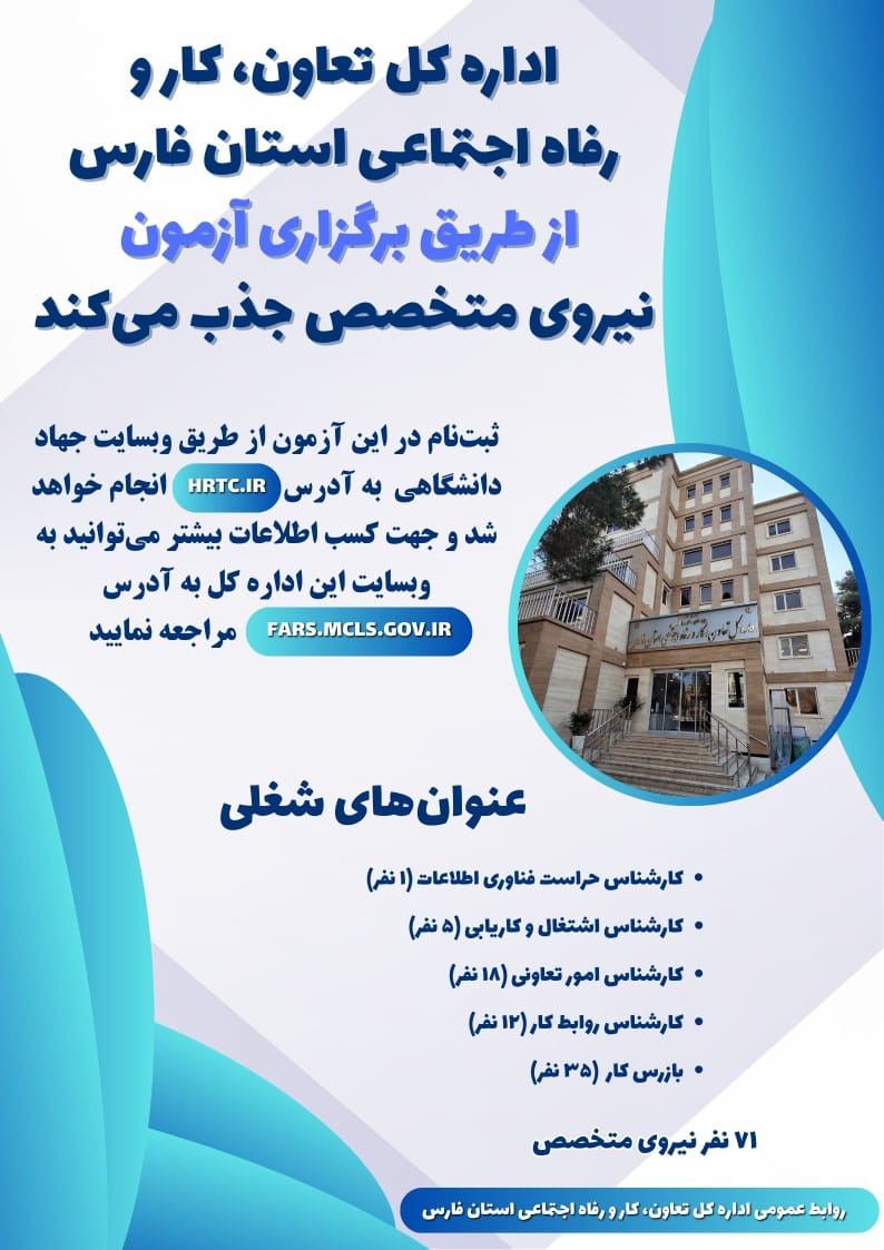 جذب نیرو در اداره کل تعاون کار و رفاه اجتماعی استان فارس