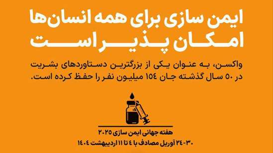 هفته جهانی ایمن سازی مصادف با ۴ تا ۱۱ اردیبهشت، یک فرصت برای مرور یک دستاورد عظیم تاریخی است و آن تکنولوژی واکسن است که در ۵۰ سال گذشته حداقل جان ۱۵۴ میلیون نفر را حفظ کرده است.