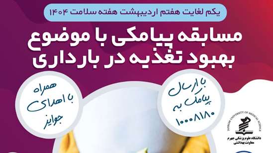معاونت بهداشتی دانشگاه به مناسبت هفته سلامت۱۴۰۴ برگزار میکند. "مسابقه پیامکی با موضوع بهبود تغذیه در دوران بارداری"