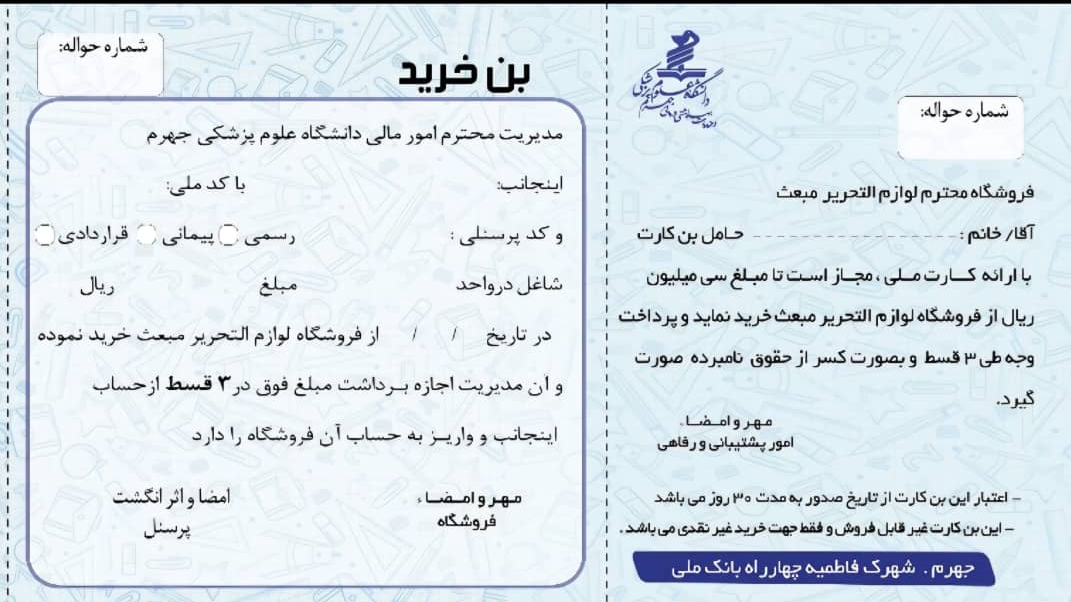 بن خرید لوازم التحریر ویژه پرسنل