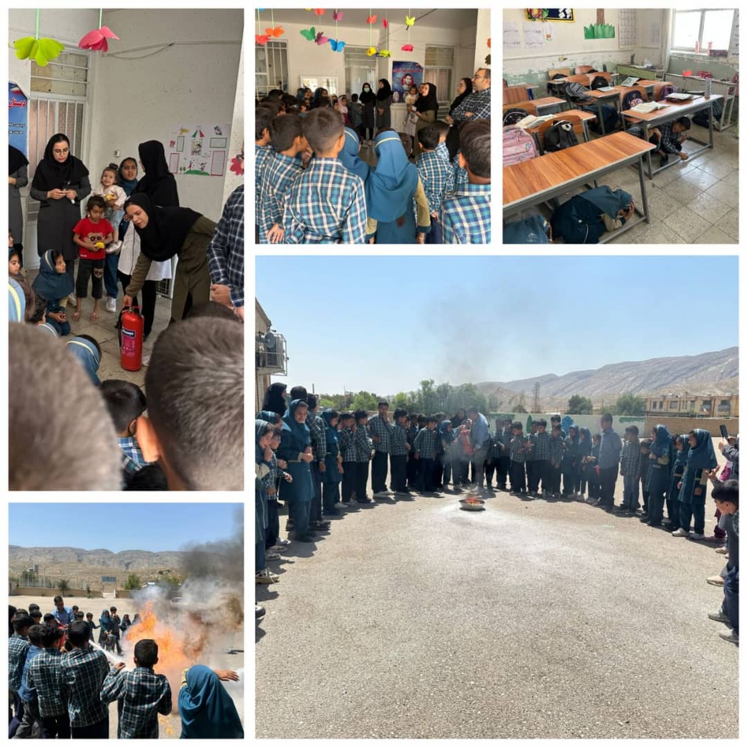 برگزاری مانور اطفاء حریق و پناه‌گیری در صورت وقوع زلزله به صورت عملی و تئوری جهت دانش آموزان با حضور کارشناس رابط بلایا و بهورزان خانه بهداشت کوشکسار