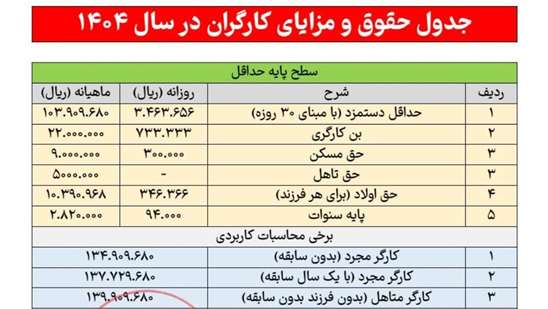 ‌افزایش ۴۵ درصدی حداقل حقوق در سال ۱۴۰۴