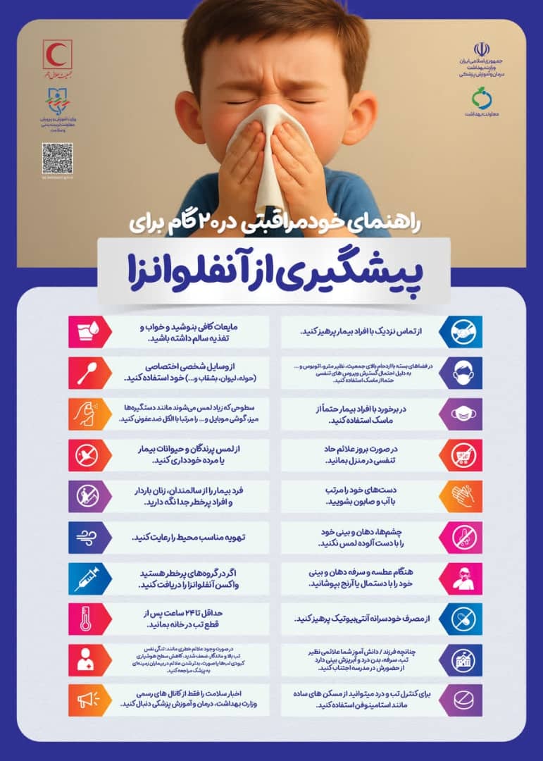با خود مراقبتی از ابتلا به بیماری آنفلوآنزا و انتقال آن پیشگیری کنیم 1404/09/09 - 07:31 - تعداد بازدید: 17 - تعداد بازدیدکننده: 16 - کد خبر : 4299 - گروه خبری : اخبار معاونت,رویداد - تعداد نظرات : 0