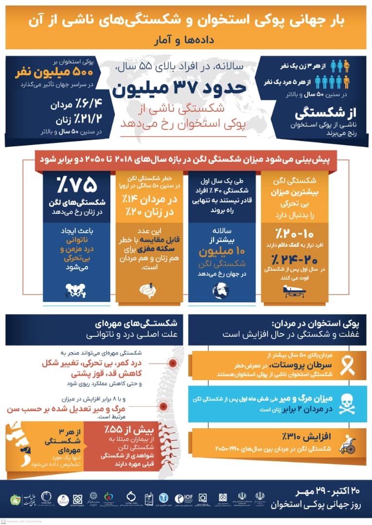 هفته ملی سلامت استخوان 1404/07/27 - 08:22 - تعداد بازدید: 80 - تعداد بازدیدکننده: 80 - کد خبر : 4007 - گروه خبری : گزارش تصویری,رویداد - تعداد نظرات : 0 هفته ملی سلامت استخوان؛ از 26 مهر الی 2 آبان 1404با شعار "بی توجهی به سلامت استخوان را متوقف کنیم" بار پوکی استخوان و شکستگی ناشی از آن