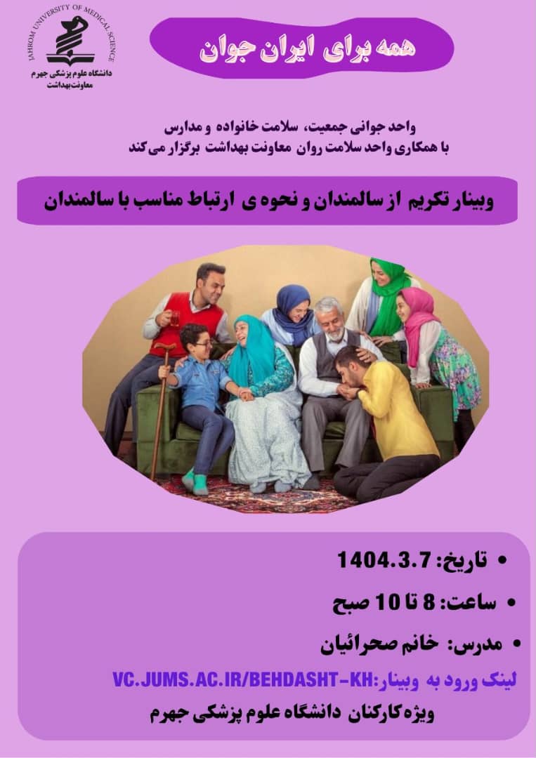 ویژه کارکنان دانشگاه علوم پزشکی جهرم 1404/03/04 - 08:58 - تعداد بازدید: 61 - تعداد بازدیدکننده: 61 - کد خبر : 3353 - گروه خبری : گزارش تصویری - تعداد نظرات : 0