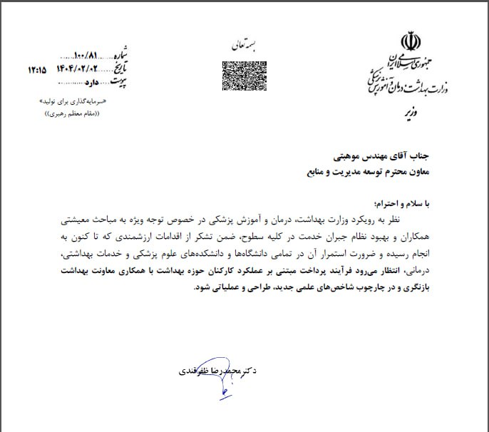دستور وزیر بهداشت به معاون خود بر اصلاح فرایند پرداختی به کارکنان حوزه بهداشت