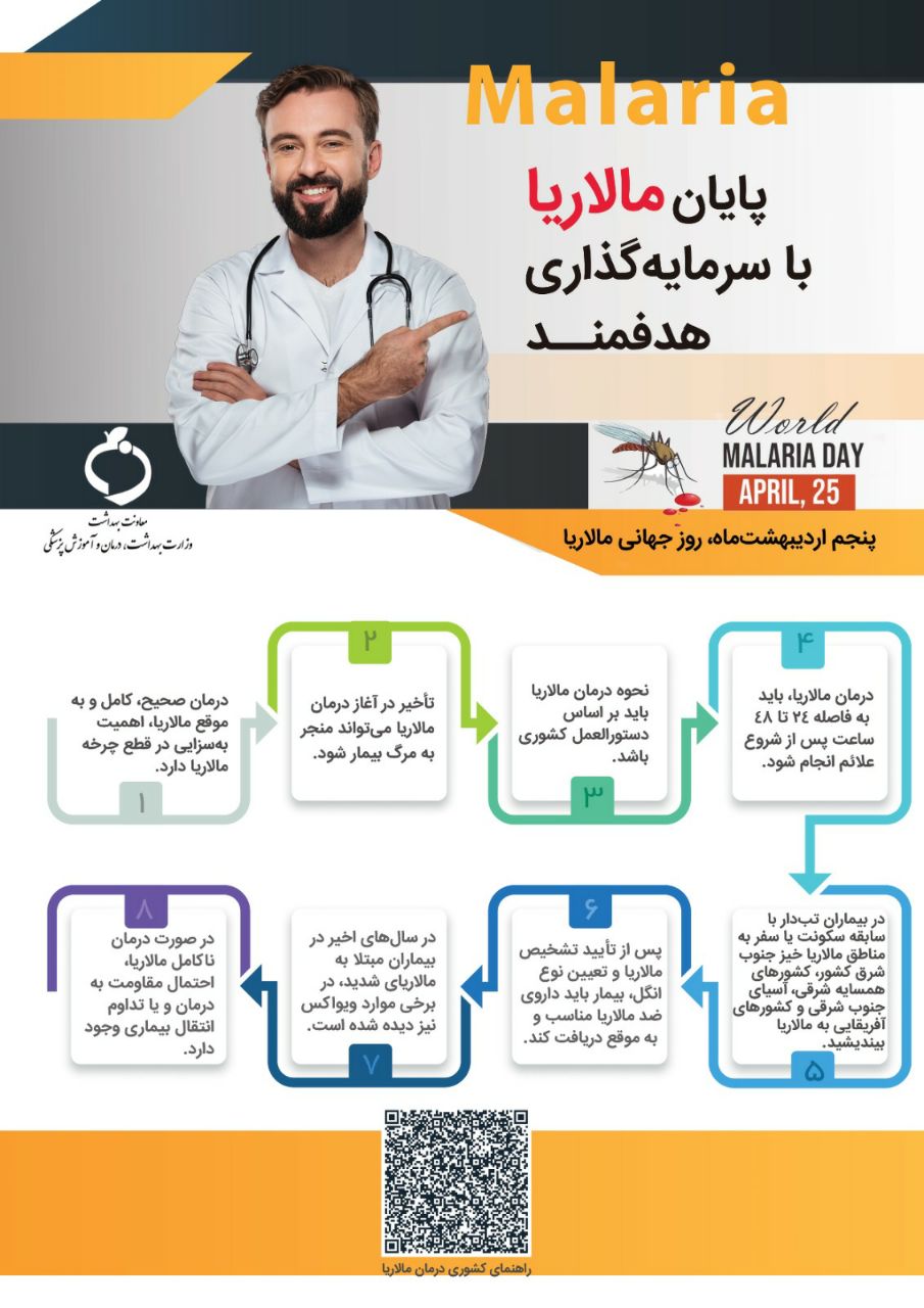 او در پایان گفت: «درمان سریع موارد مثبت به منظور جلوگیری از مرگ و گسترش بیماری، یکی از اولویتهای ما در برنامه حذف مالاریاست.»