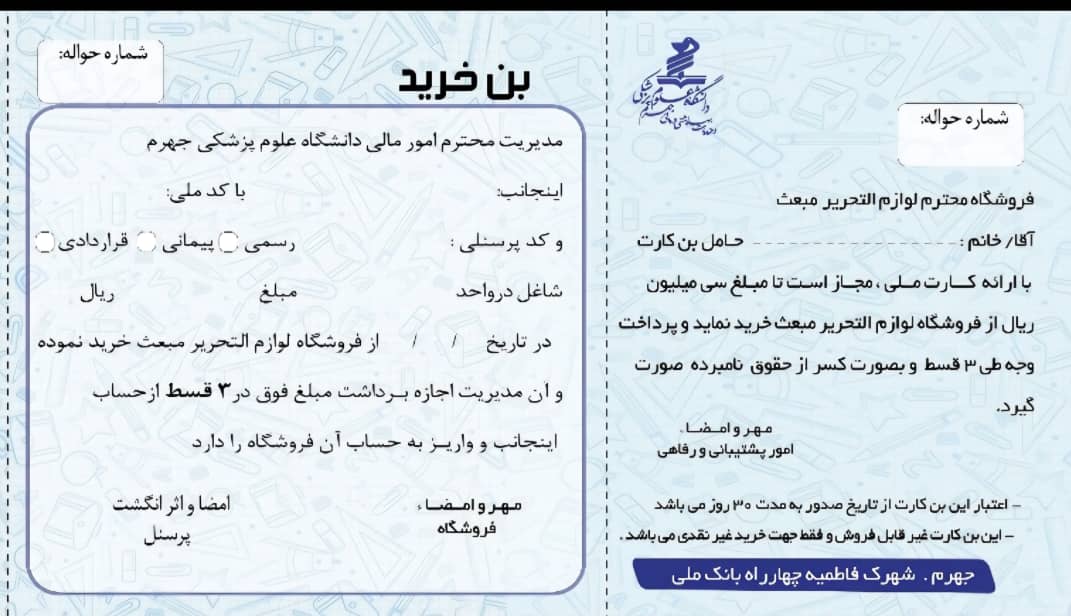 بن خرید لوازم التحریر ویژه پرسنل