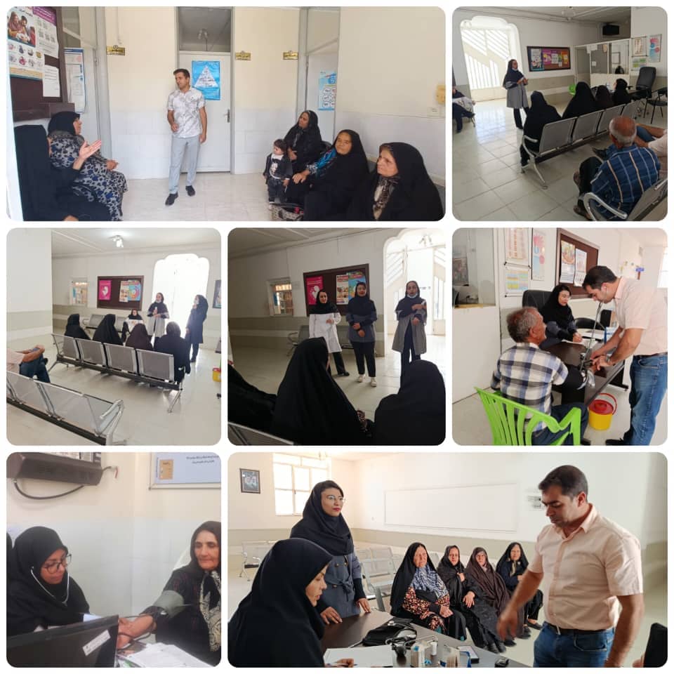 برگزاری پویش غربالگری فشارخون و قند خون جهت سالمندان تحت پوشش در مرکز فشان و خانه های بهداشت تحت پوشش و ارائه توصیه های تغذیه ای مناسب سالمندان و همچنین ارائه نکات آموزشی در خصوص سلامت روان سالمندان