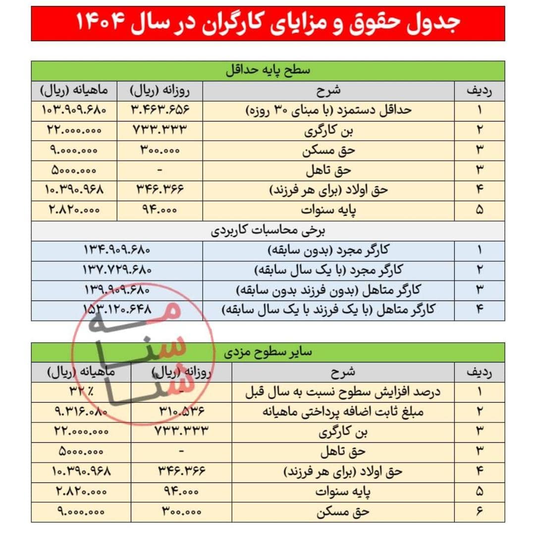 افزایش ۴۵ درصدی حداقل حقوق در سال ۱۴۰۴