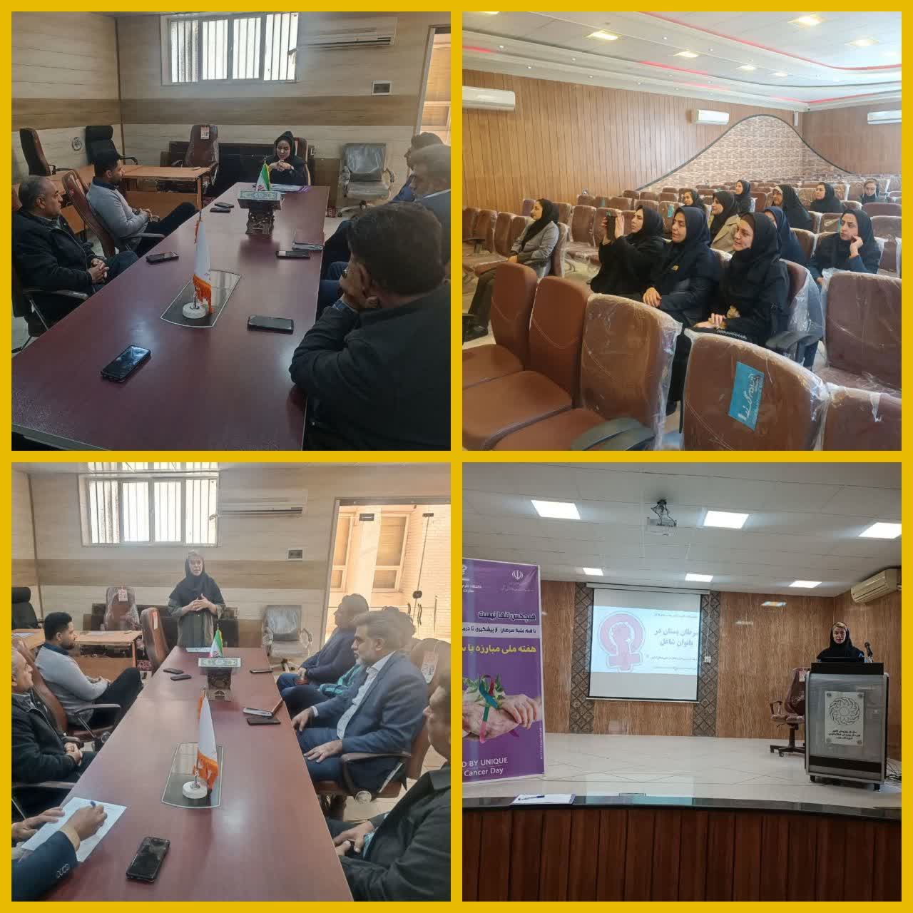 برگزاری دوره آموزش خودمراقبتی بمناسبت هفته ملی مبارزه با سرطان با همکاری داوطلب متخصص سلامت ادارات ویژه آقایان و بانوان شاغل در اداره بهزیستی شهرستان جهرم.