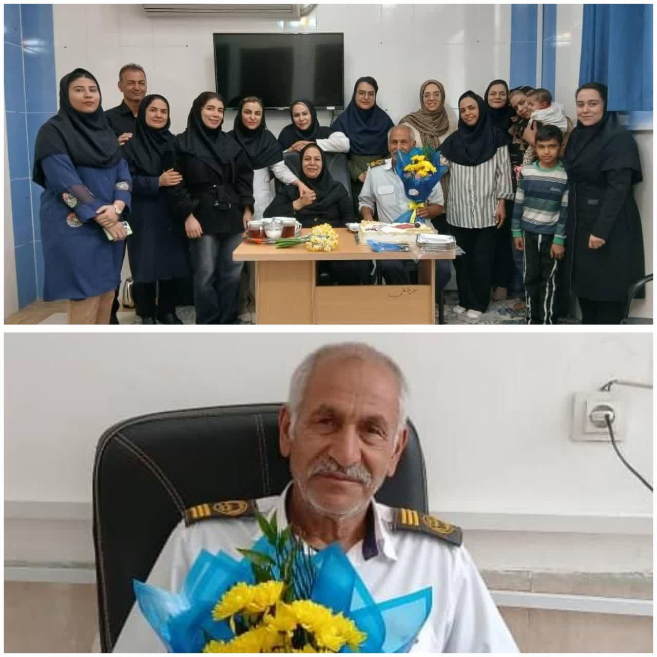 مراسم گرامیداشت بازنشستگی جناب آقای تقی‌زاده (حفاظت فیزیکی درمانگاه جزه شبکه بهداشت شهرستان خفر)